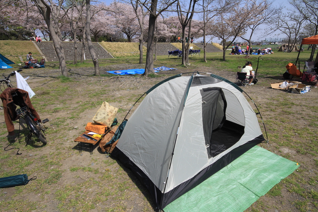 最近キャンプが無性にやりたくなって、テントをもらったので試し張りに行って来ました。