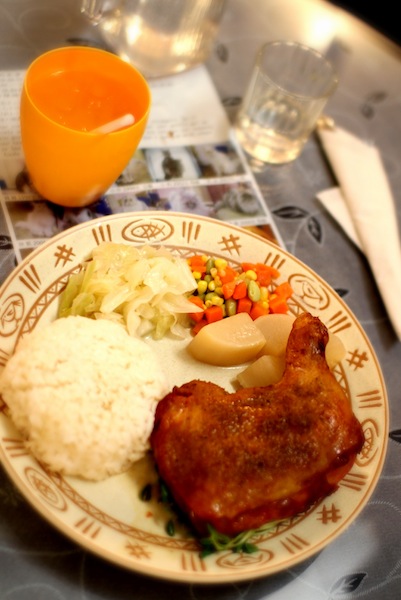ランチを頼んだものの、隣に猫がやって来て「撫でろ」と言わんばかりなので、まったく食事が進みません。