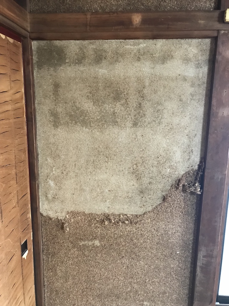【埼玉ボロ家】和室の繊維壁はがし埼玉ボロ家の2階は和室で、壁がとても暗〜い感じです。