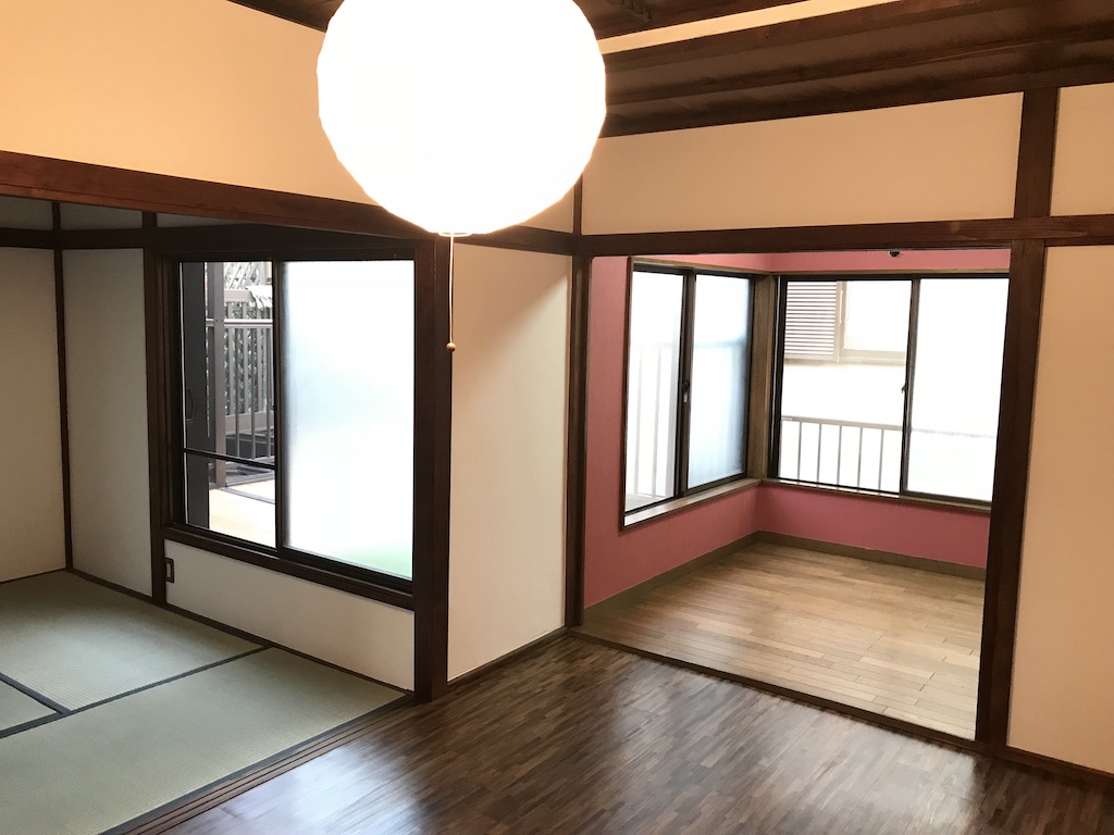 【埼玉ボロ家】和室→洋室へ ビフォーアフター和室の床は大工さんに頼んで畳からベニヤ張りにしてもらい、その上にフロアタイルシートを貼りました。