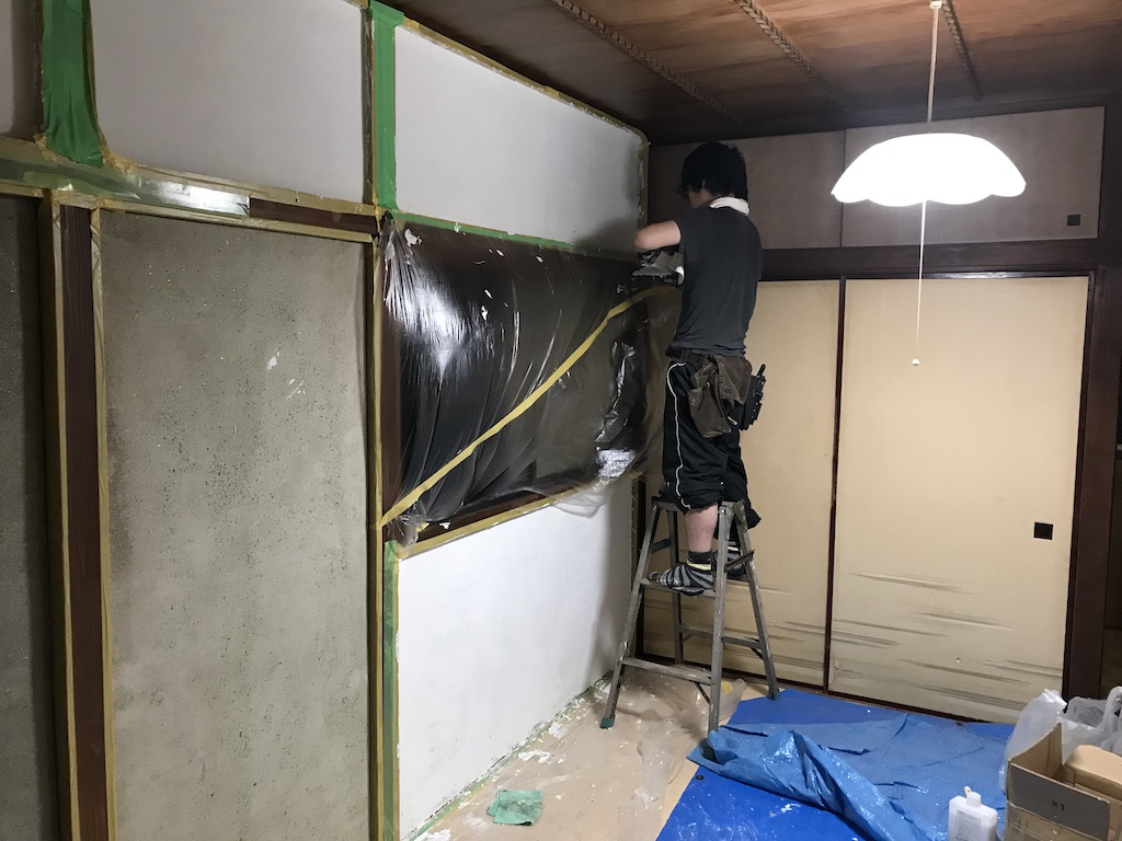 今回は剥がす前に水をかけたけど、繊維壁はがし専用の薬液があって、それを使うともっと楽だったらしい。